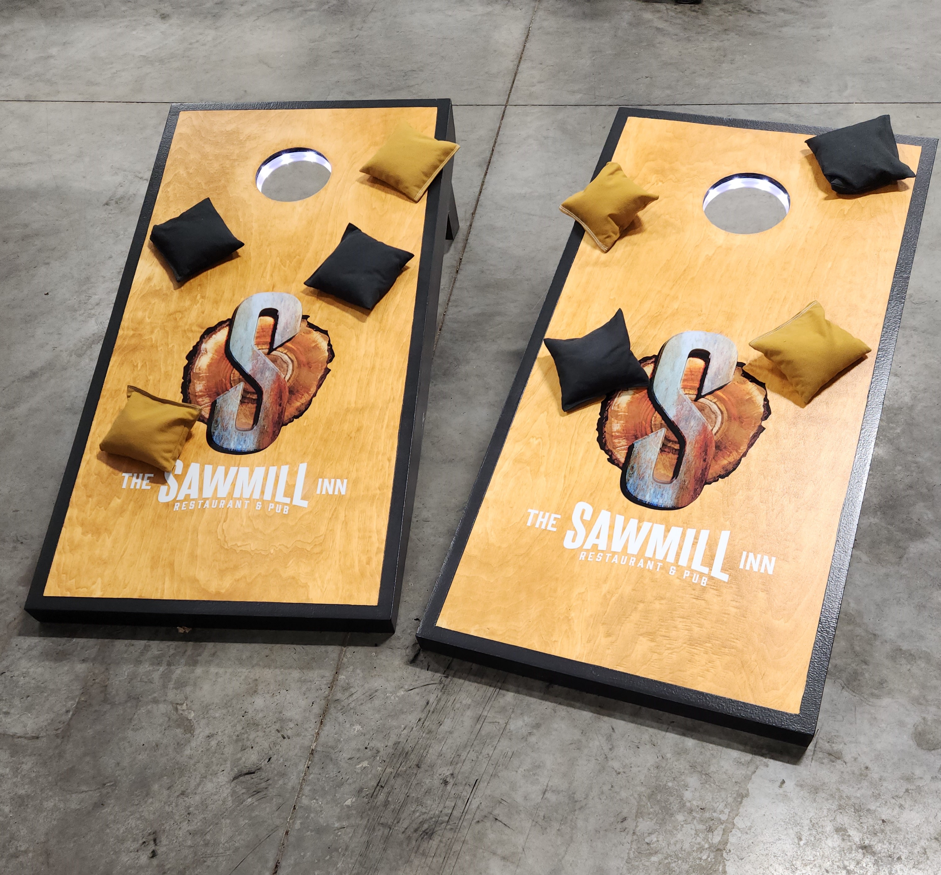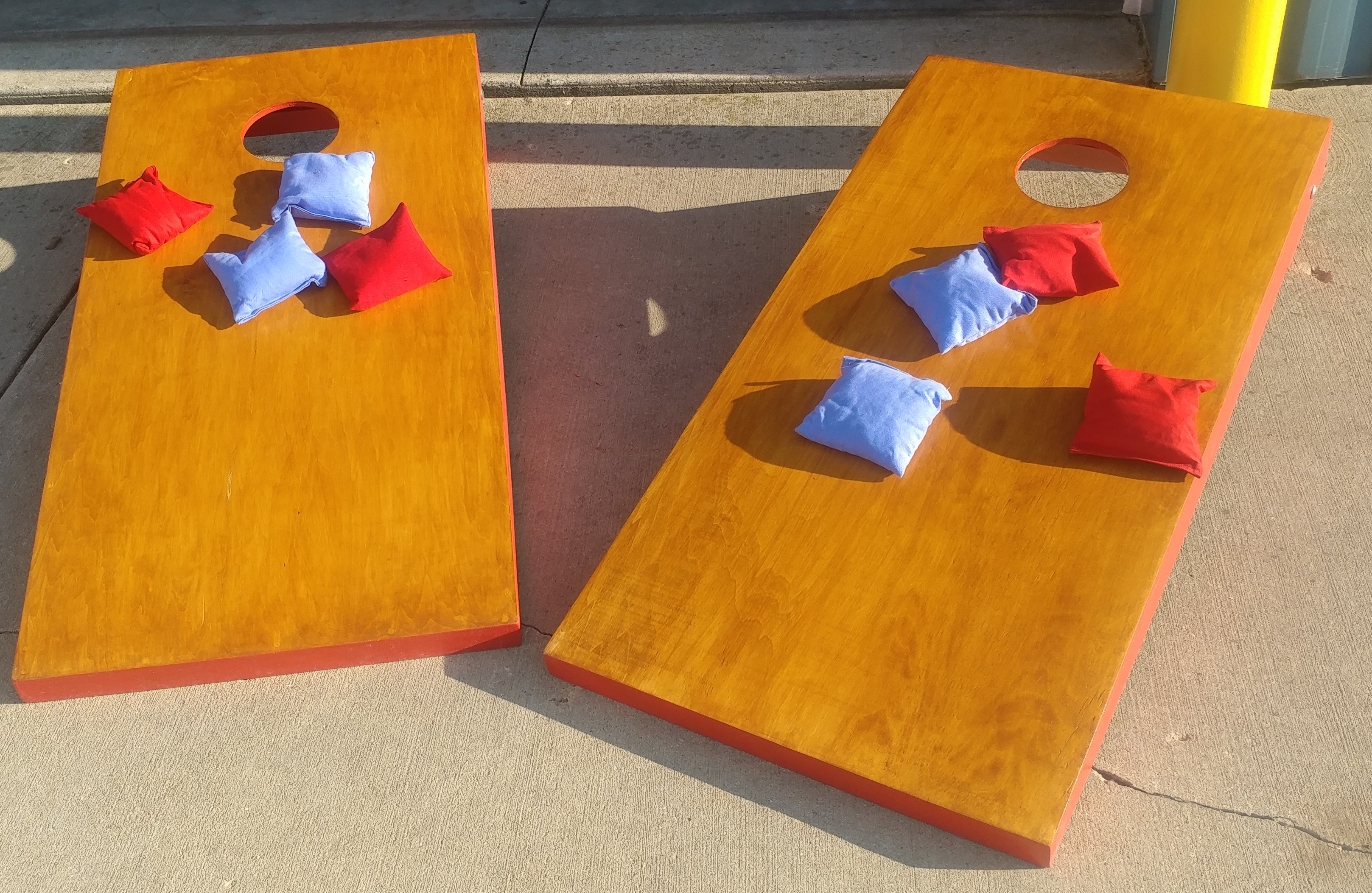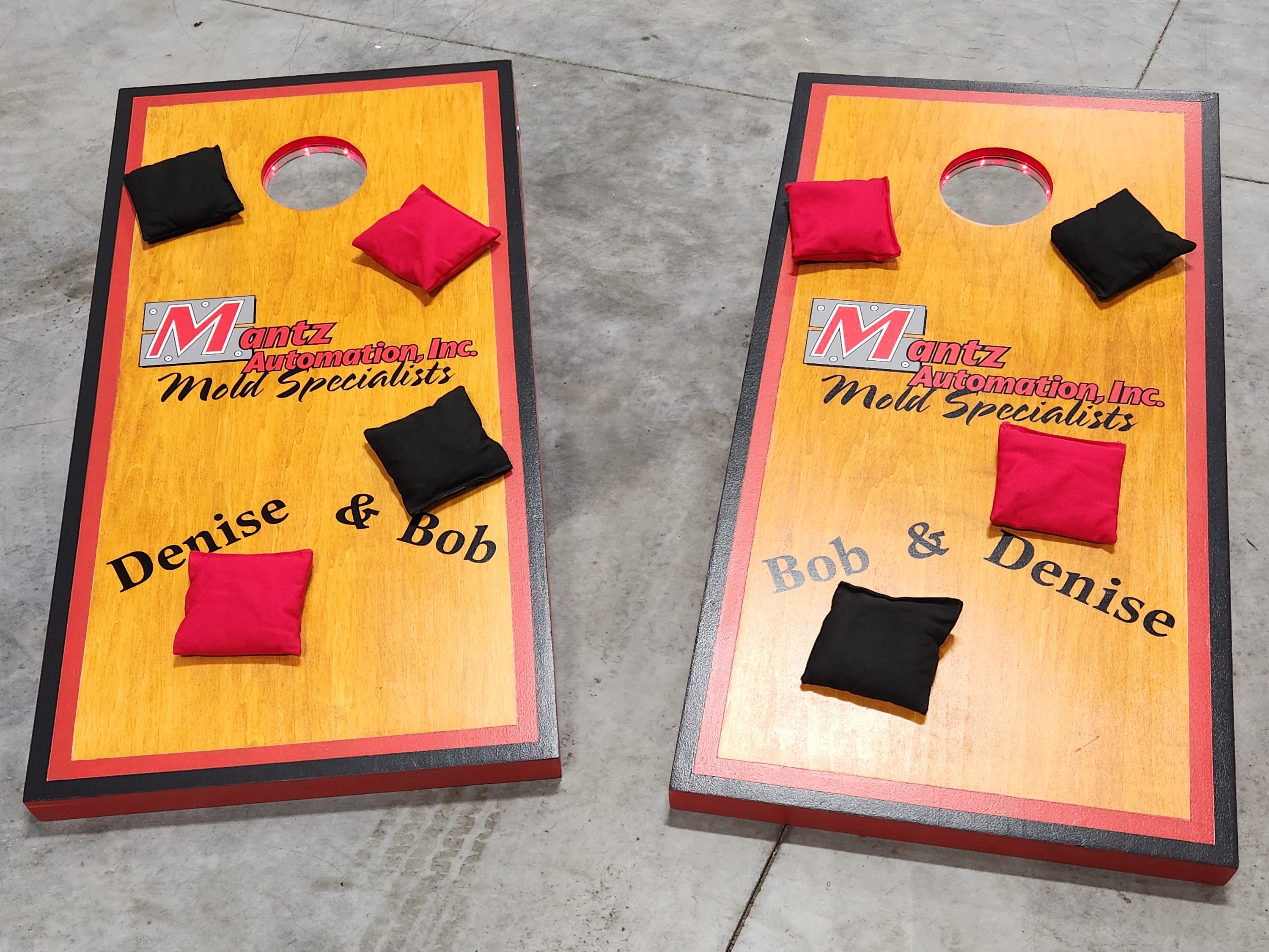 Since the introduction of our Games trailer and the use of the CornHole games we built, there have been several requests to build CornHole Games for others. We have built more and will take orders for Custom sets. Pricing varies based on cost of materials at the time of orders. We can hand paint, use decals, wraps or other graphics. Lights and bags can be ordered as well. Here are some pictures of previous sets. Some with lights