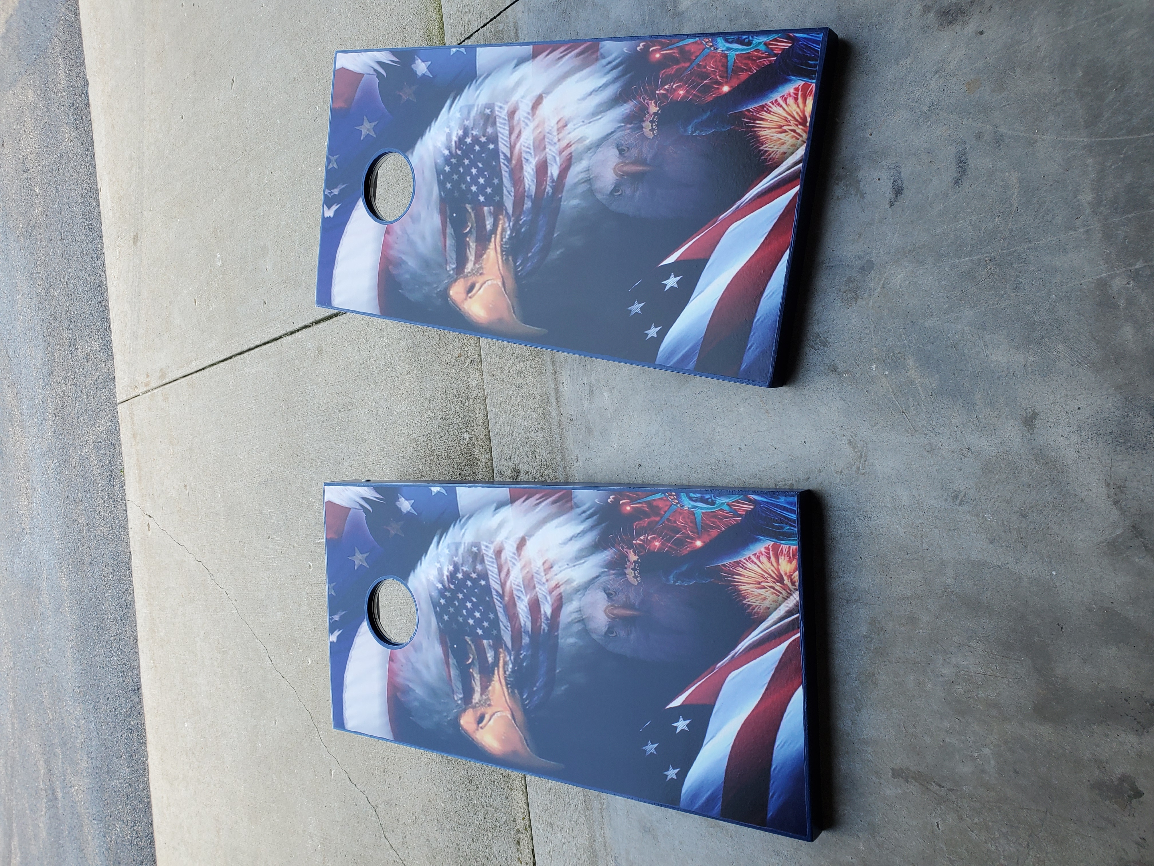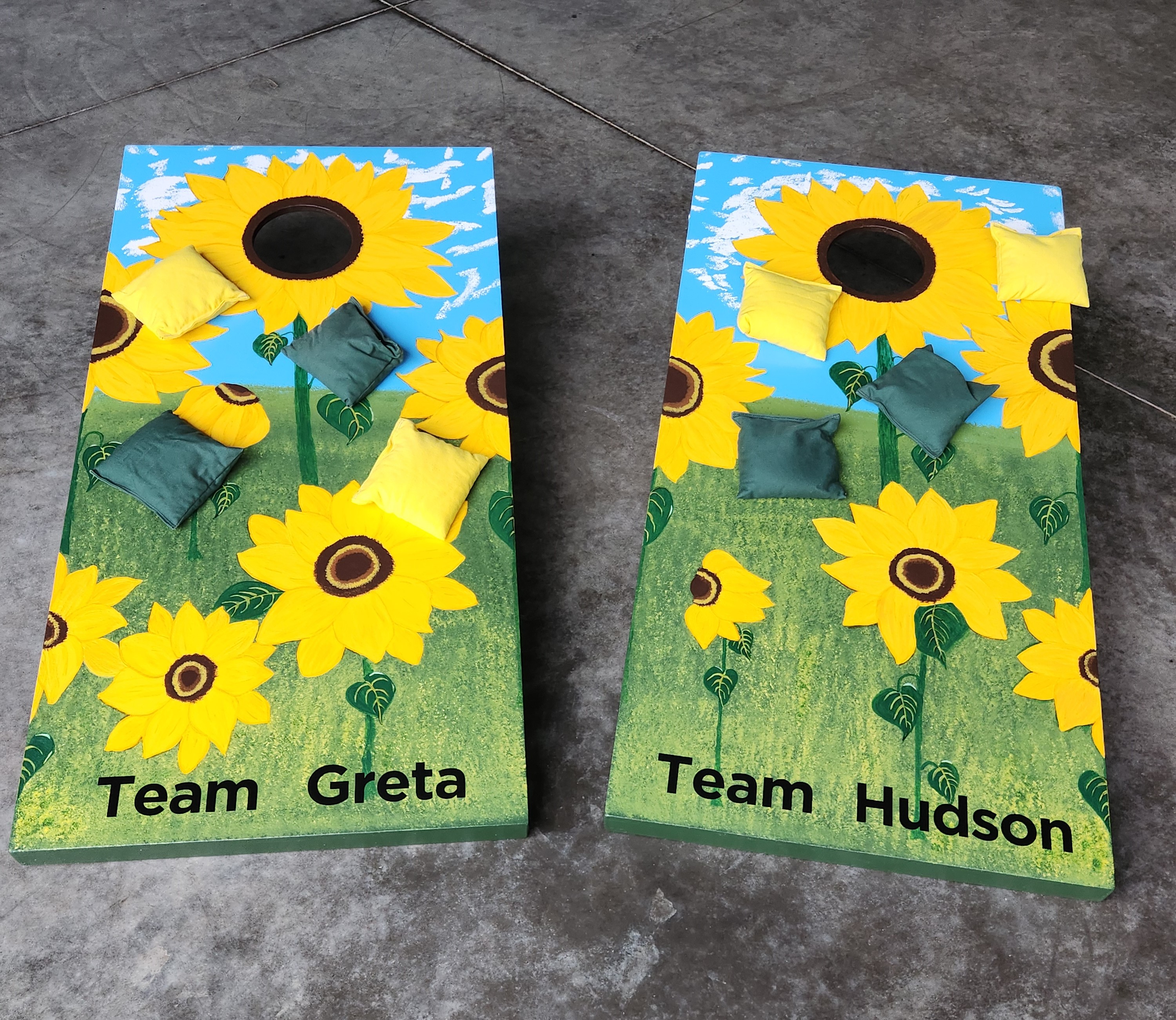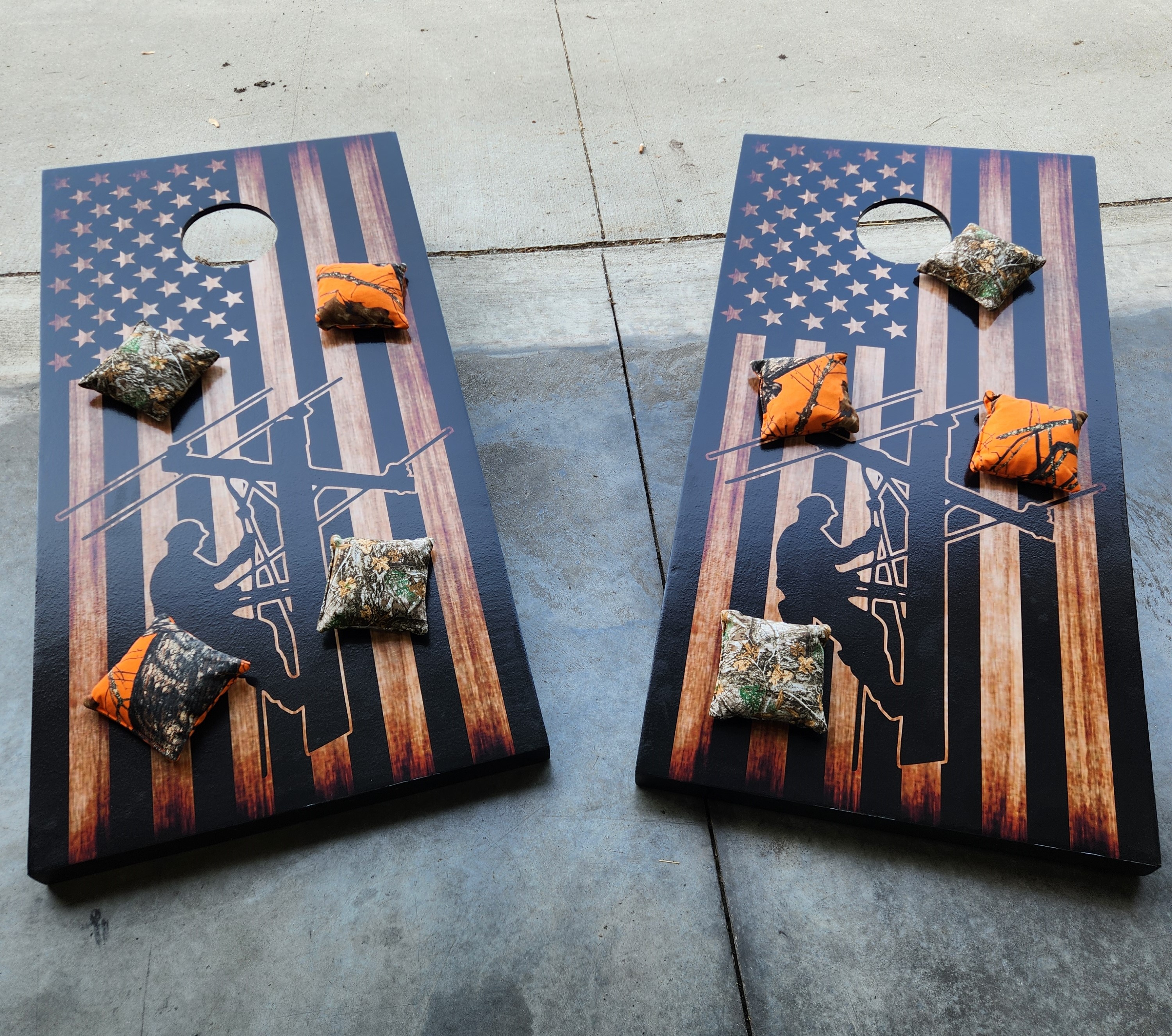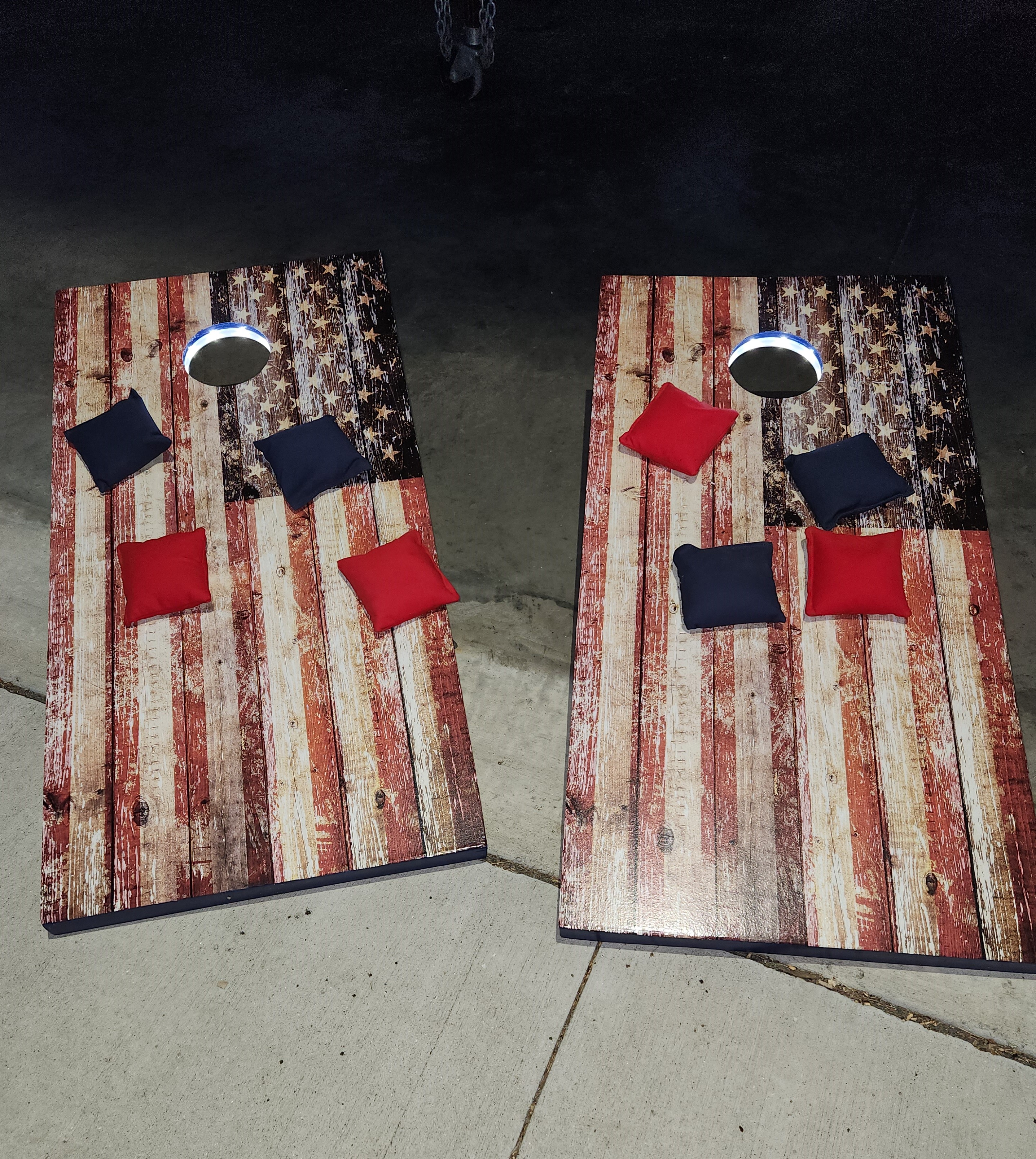 Since the introduction of our Games trailer and the use of the CornHole games we built, there have been several requests to build CornHole Games for others. We have built more and will take orders for Custom sets. Pricing varies based on cost of materials at the time of orders. We can hand paint, use decals, wraps or other graphics. Lights and bags can be ordered as well. Here are some pictures of previous sets. Some with lights